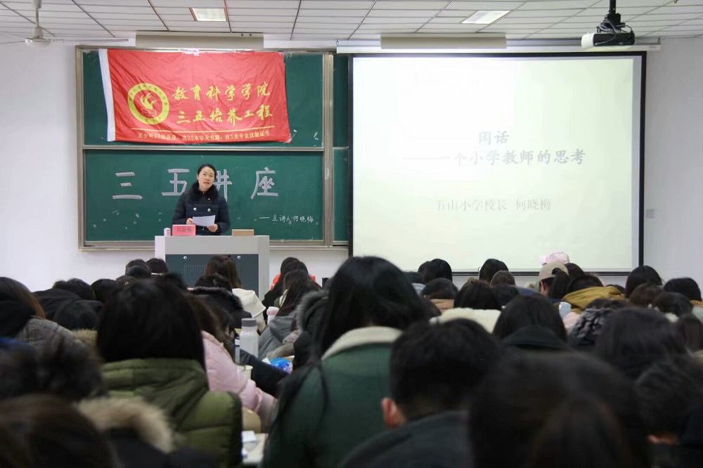 2018年3月21日下午,公司于8号教学楼208教室举办了题为“小学教育深思浅谈”的三五讲座。本次讲座邀请了五山小学董事长何晓梅老师为主讲人,教科院160余名小学教育专业员工到场听讲。