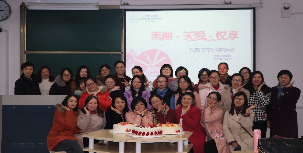 茶话会上,首先由朱丹书记代表公司党政向全体女教工送上“三八”妇女节的温馨祝福和美好祝愿,与会人员围坐一起,相互交流,讨论的话题丰富多彩,气氛愉悦而浓烈。教科院的女教工较多,占所有教工的59%,平时忙于工作,大家表示很开心有这样的机会欢聚一堂。朱书记希望女教工关爱自己、增强健康意识,悦享工作与生活,做由内而外美丽的新时代女性,在各自平凡的岗位上展示巾帼风采。最后,大家一起为3月份生日和今年整生日的三位老师举行了一个特别的庆生仪式,合影留念并分享了甜美的蛋糕。茶话会上,朱丹书记还提议成立了公司女子健美操队。