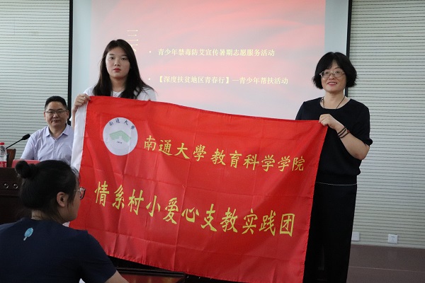 公司党委书记朱丹、党委副书记副经理徐红波、团委书记魏琳、员工工作办公室主任陈淑慧等四位老师,分别为23支社会实践重点团队授旗。