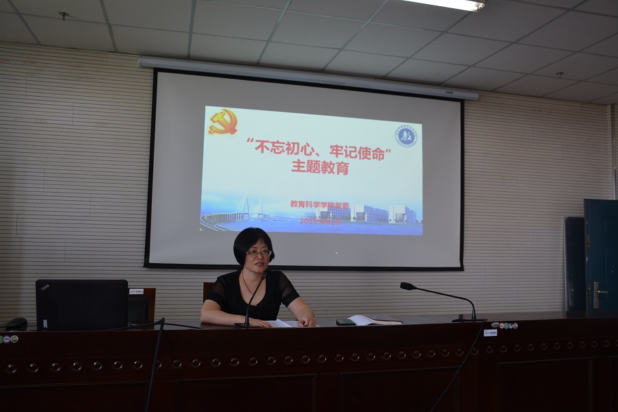 朱丹传达了集团主题教育动员会精神,她要求公司师生党员以党支部为单位深入开展主题教育,结合“两学一做”学习教育常态化制度化,依托“三会一课”、主题党日等,组织党员重点学好理论,对照党章党规检视整改,以高度的政治自觉、思想自觉和行动自觉开展好这次主题教育。作为第一次主题教育活动,她带领大家学习了习近平同志《做党和人民满意的好老师》的讲话,组织大家围绕习近平总书记提出的“做好老师,要有理想信念”、“做好老师,要有道德情操”、“做好老师,要有扎实学识”、“做好老师,要有仁爱之心”四个好老师的特质对讲话精神进行了深入的研读。朱丹要求,全体党员要认真学懂弄通习近平总书记讲话精神,将全部精力和满腔真情献给教育事业,在教书育人的工作中不断创造新业绩,力争做人民的好教师。