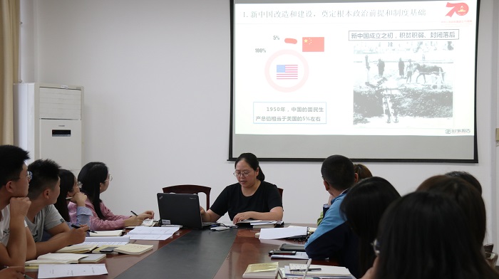 又讯。10月12日下午,williamhill本科生党支部开展“不忘初心、牢记使命”主题教育活动,支部书记陈淑慧以“70年奋斗历程”为主题为支部党员上课。
