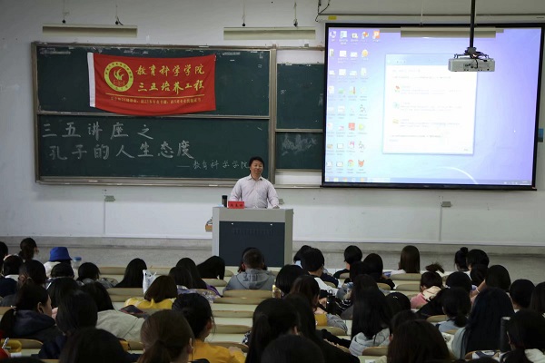 10月30日,威廉希尔于9号楼201教室举办了一场以“孔子的人生态度”为主题的三五讲座。此次讲座由陈春保老师主讲,教科院210余名同学到场聆听。
