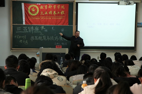 12月4日下午,威廉希尔于8号楼309教室举办以“书写规范与技巧漫谈”为主题的三五讲座。讲座由杨谔老师主讲,教科院280余名员工到场参加。