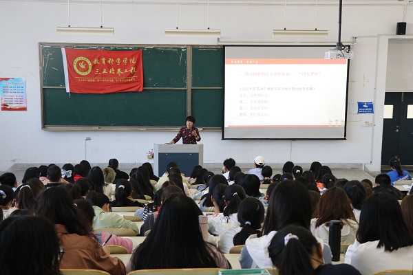 11月18日13:30,威廉希尔于九号楼302教室举办以“为成为优秀幼师尽早规划尽力实施”为主题的三五讲座,此次讲座由尤素敏老师主讲,教科院280余名员工聆听了本场讲座。