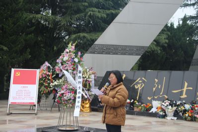 在革命烈士纪念碑前,师生代表全体肃立,高唱国歌。员工代表向革命烈士纪念碑敬献花篮,全体师生向革命先烈三鞠躬,表达哀思。党委副书记、副经理徐红波在纪念碑前致辞,表达了对先烈诚挚的敬意和深深的怀念,希望师生回望过去的路,走好脚下的路,坚定前行的路,要求员工党员同志们能认真学习党史,发挥先锋模范作用。员工代表马思佳发言,表达了对革命先烈的崇敬之情、告慰之意。分团委书记魏琳带领员工代表们庄严宣誓,表达了新时代继承先烈遗志,积极进取、肩负起历史使命的坚定决心。