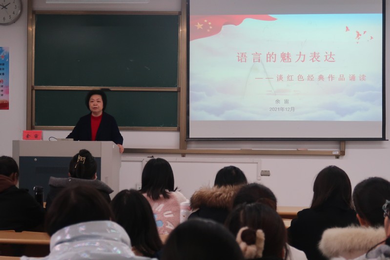 12月8日下午,国家级普通话测试员、南通市朗诵学会副会长、南通市教育局副调研员余宙应邀为公司williamhill师生做了题为“语言的魅力表达——谈红色经典作品诵读”的专题讲座,70余名小学教育、学前教育专业员工参加了本次讲座。