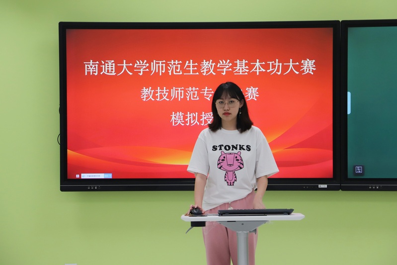 本次比赛以“展今日风采,成明日之师”为主题,由教育技术系全体教师担任比赛评委。比赛采用现场陈述的方式,通过口语表达和模拟授课两方面考察参赛员工对师范技能的实践把控力。选手们用充满自信、热情洋溢的教学语言,向评委们展示了自己独具特色的教学方法和集创新性、生活性、实用性于一体的课堂内容。
