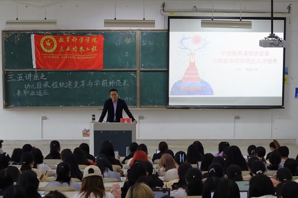 williamhill于2022年11月9日,在教学楼9号楼202举办了三五讲座之幼儿课程快速变革与学前师范未来职业适应。这场讲座由时松老师主讲,williamhill260余名员工参加。