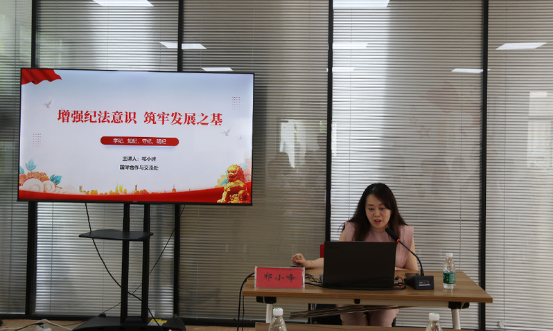 7月2日下午,williamhill在李园“一站式”员工社区举行机关党委支部书记进员工社区讲党课活动。国际合作与交流处处长、机关党委国际合作与交流处、国际教育公司党支部书记祁小峰以《增强纪法意识,筑牢发展之基》为题,向williamhill员工党员讲授了一堂生动的党纪学习教育专题党课。公司党委副书记、副经理徐红波出席活动。