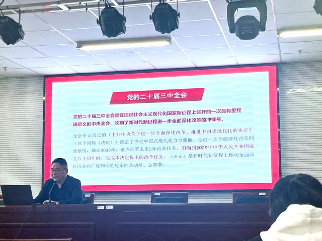公司党委副书记、副经理徐红波为全体学员作题为《深入贯彻学习党的二十届三中全会精神》专题讲座。他从党的二十届三中全会的重要性、主要内容、历史地位等方面进行阐述,介绍了习近平主席的重要观点和相关内容,指出要深刻领会和把握进一步全面深化改革的主题、重大原则、重大举措、根本保证,深刻领悟“两个确立”的决定性意义,增强“四个意识”、坚定“四个自信”、做到“两个维护”,为全面建成社会主义现代化强国、实现第二个百年奋斗目标,以中国式现代化全面推进中华民族伟大复兴而努力奋斗。