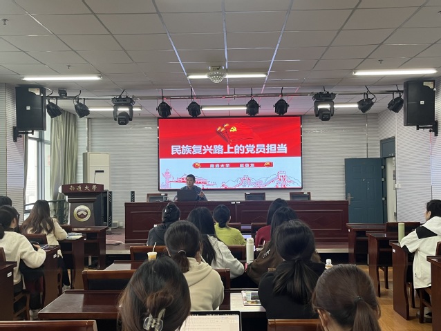 公司团委书记、本科生第二党支部书记赵敬龙老师作题为《民族复兴路上的党员担当》专题报告。他从百年来的伟大精神、党取得的四个伟大成就、新时代党员的伟大担当这三个层面,介绍了中国共产党在领导国家实现民族复兴的实践中付出的巨大努力和牺牲,展现了共产党人不忘初心、牢记使命的担当精神。启迪新时代党员同学要继承和发扬先辈的优良传统,树牢共产主义理想信念,在基层实践中发光发热,用脚丈量祖国的大地山川,将青春挥洒在每一片热土,在实现民族复兴的伟大征程上建功立业。