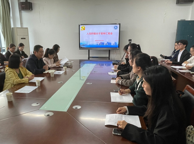 26名拟发展对象从现实表现、实习工作以及党员职责的认识等方面依次进行汇报。答辩组老师依据拟发展对象的陈述现场评议。